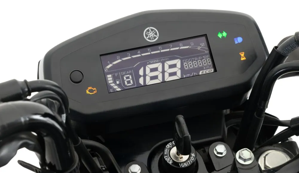Entre os destaques da Yamaha Factor 2026 está o farol de LED com luz de posição integrada. O painel no estilo “Blackout” oferece melhor visualização das informações no display LCD, tanto de dia quanto à noite. O modelo traz indicador de marchas e função ECO, que sinaliza o momento ideal para uma condução mais econômica, ajudando a reduzir o consumo de combustível.