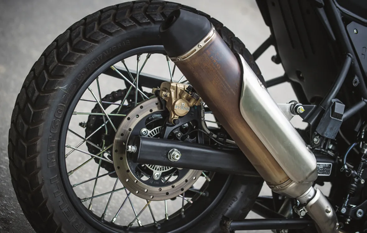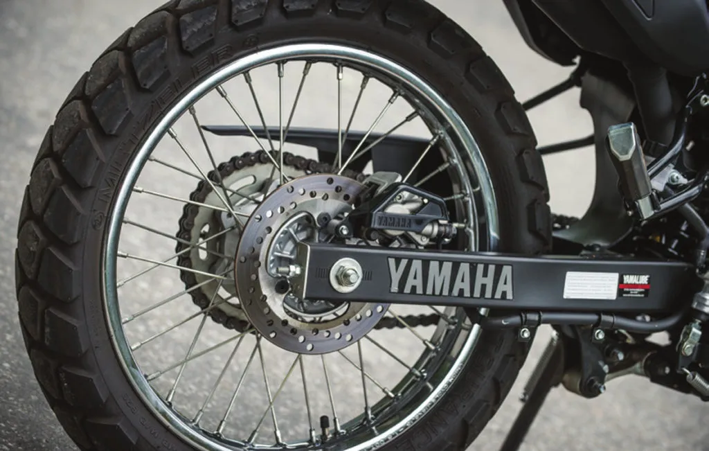 As rodas com aro de 21” na dianteira e 17” na traseira já deixam clara a proposta on e off-road destas pequenas trail de entrada, pois é fato que para o uso off-road as rodas raiadas são mais apropriadas e resistentes a impactos. Os pneus das duas são bons, a Yamaha calça Metzeler Tourance e a Royal os Pirelli MT60, os dois oferecem segurança para rodar numa boa estrada asfaltada e garantem inclinações de raspar as pedaleiras, cumprem muito bem as tarefas na terra seca, mas são inadequados para a lama, então é prudente evitar esses trechos para não sofrer fazendo malabarismos em cima da motocicleta.