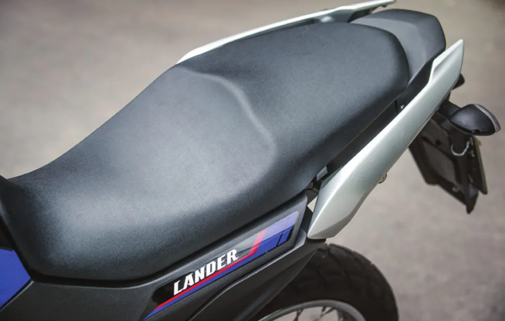 O motor da nova Lander 250 é o mesmo das versões anteriores, um monocilindro de exatos 249,5 cm³ equipado com injeção de combustível flex, que entrega 20,7 cavalos de potência quando abastecido com gasolina e 20,9 cv quando abastecido com etanol, sempre a 8.000 rpm e com uma boa elasticidade. Ele gira mais que o monocilindrico da Himalayan, tem uma pegada mais esportiva e portanto pede uma tocada mais esperta e sempre com o motor cheio para otimizar as respostas. O torque máximo de 2,1 kgf.m chega nas 6.500 rpm e é muito bem aproveitado pelo perfeito escalonamento da caixa de câmbio de cinco marchas de engates suaves e precisos.
