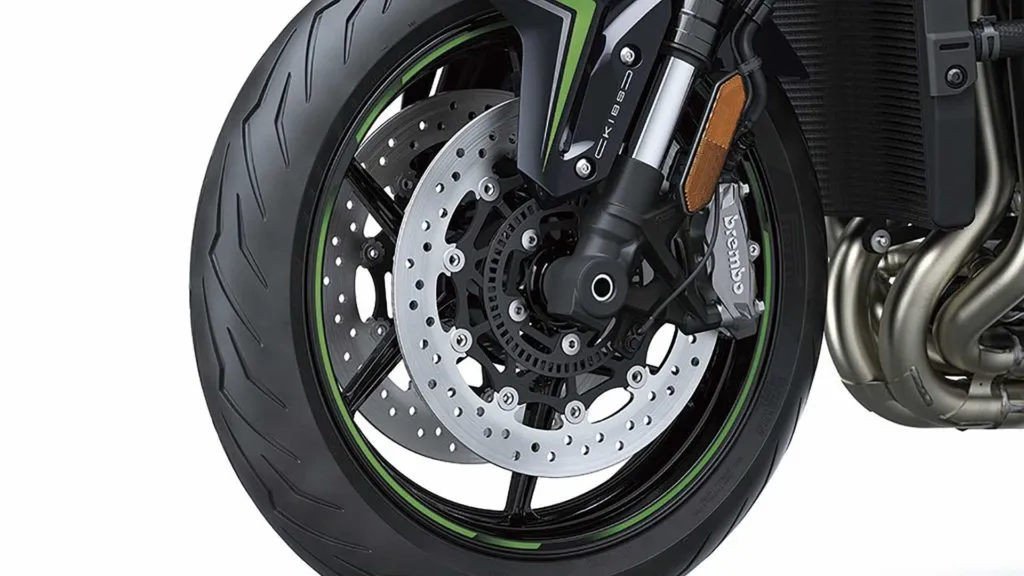 O sistema de freios conta com duplo disco de 320 mm de diâmetro na dianteira casado com pinças Brembo M4.32 de fixação radial, e na traseira um disco único de 260 mm é casado com uma pinça flutuante de dois pistões. O painel TFT conta com conexão Bluetooth para o Rideology the App Smartphone da Kawasaki. A iluminação é Full LED.