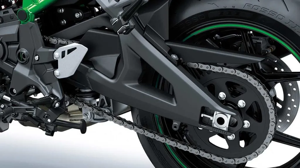 A relação final também é mais curta, vinda com a adoção de uma coroa maior em relação à H2 SX SE, passando de 44/18 para 46/18. Essa relação torna as arrancadas mais vigorosas e fortalece as ultrapassagens nas rodovias. A potência máxima da Z H2 é equivalente à da H2 SX SE, com 200 CV a 11.000 rpm e os 14 kgf.m de torque são entregues a 8.500 rpm, 1.000 rpm mais cedo que na H2 SX SE.