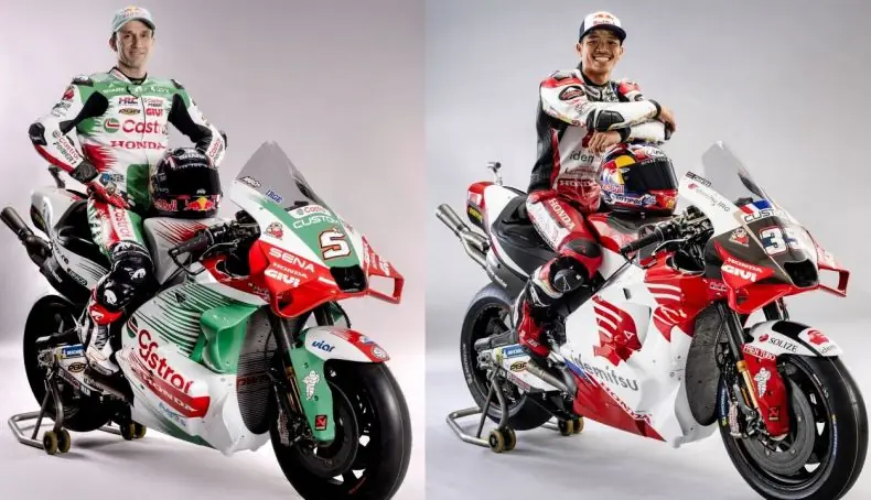Após viver a pior temporada dos últimos anos na MotoGP, a equipe oficial da fabricante japonesa terá mais uma vez Luca Marini e Joan Mir no comando de suas RC213V. Destaque para a nova pintura sem a Repsol, que encerrou sua parceria com a marca ano passado. Para seu lugar, chega a Castrol.