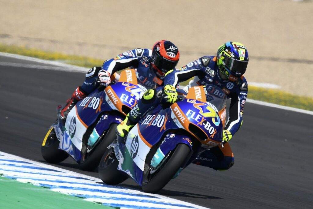 A prova foi marcada por um acidente ainda no início. Remy Gardner caiu na largada e viu sua moto ser atingida com violência por Álex Márquez. Mais atrás, Dimas Ekky Patrama caiu e acabou atropelado por Marco Bezzecchi. A direção de prova acionou a bandeira vermelha e encurtou a prova de 23 para 15 voltas. Gardner e Patrama foram encaminhados ao centro médico do circuito de Jerez para serem avaliados.