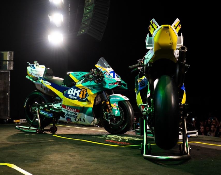 A equipe Gresini Racing chamou atenção no sábado (21) ao apresentar uma pintura especial para suas motos no GP do Brasil de MotoGP. O anúncio foi feito durante a Fan Fest realizada no estádio Serra Dourada, em Goiânia, e trouxe um visual que reforça a conexão com o público brasileiro.