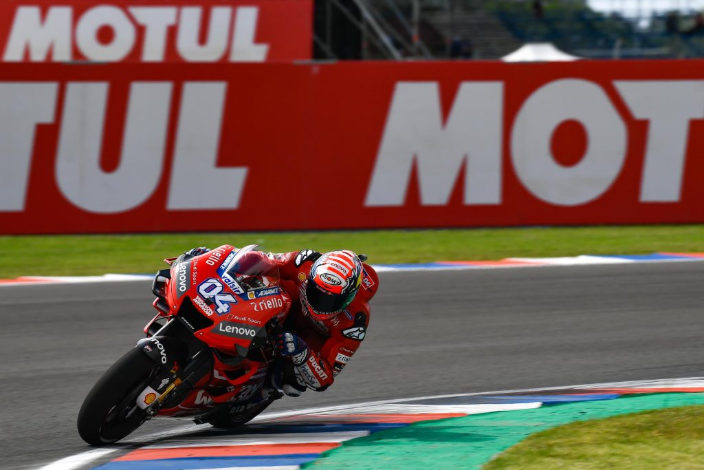 No FP2, no fim da tarde, Márquez parecia que fecharia o dia com o melhor tempo, mas foi superado pelas Ducati. Andrea Dovizioso (#04), piloto Ducati oficial e vencedor da etapa 1 no Qatar, foi o mais rápido, baixando em quase 1 segundo o tempo de Márquez. Dovizioso fez 1min29s181, na frente por apenas 9 milésimos de Jack Miller.