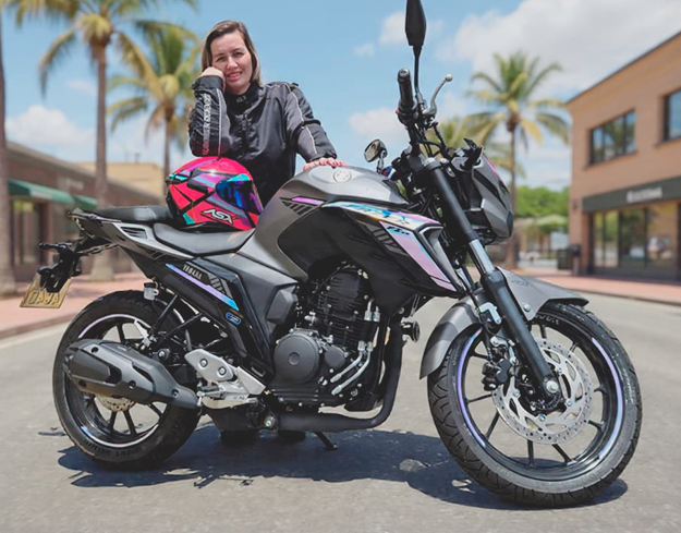 Habilitada desde 2009, Geise realizou o sonho de ter uma moto da Kawasaki em 2022, começando com uma Ninja 400 e evoluindo posteriormente para uma Ninja ZX-4R. “Quanto mais eu me aproximava desse universo, mais percebia que não queria apenas admirar. Eu queria viver isso”, relata.