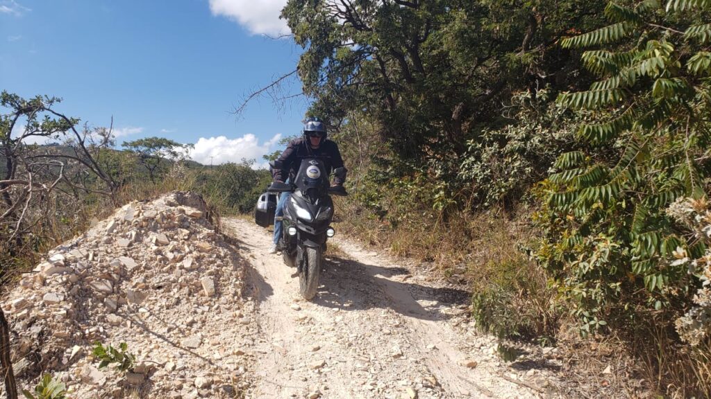 Neste aspecto, percebi que o mineiro não exagerou não. O negócio é brabo! As estradas e trilhas são de terras, dentro da gigantesca área do parque. O roteiro é indicado para pilotos experientes em técnicas fora de estrada. Aclives, declives, cavas, valas, ribanceiras, solo arenoso, pedregoso e com leitos de rochas são padrões normais de vias, além disto, encontra-se travessia de córregos e trilhas de matas fechadas.