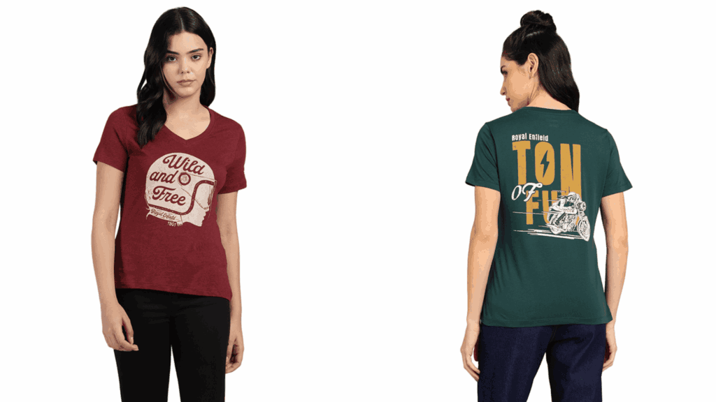 Para quem procura opções mais acessíveis e ideais para o Amigo Secreto, a linha casual da Royal Enfield traz camisetas e polos com identidade própria. A Wild & Free Melange T-Shirt feminina é confeccionada em algodão 100% e está disponível nos tamanhos XS ao 2XL, nas cores vermelho e verde azulado, com preço sugerido de R$ 149,90. Já a Ton Of Fun Women’s T-Shirt, também em algodão 100%, aparece nas cores verde escuro e mostarda, com preço sugerido de R$ 109,90.