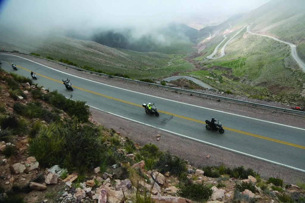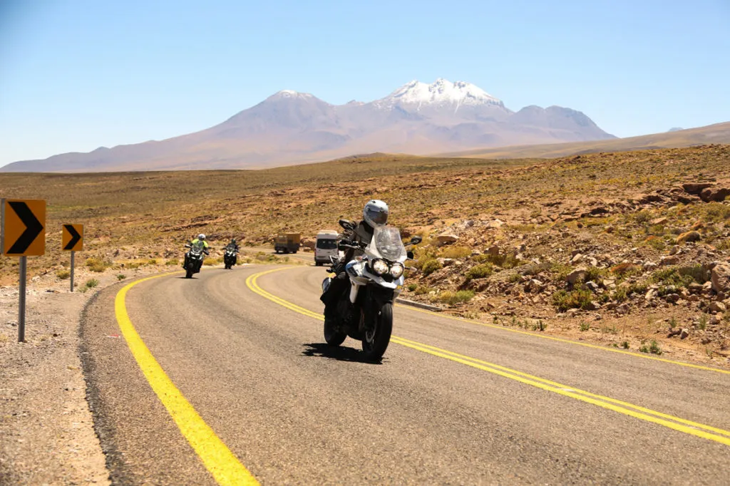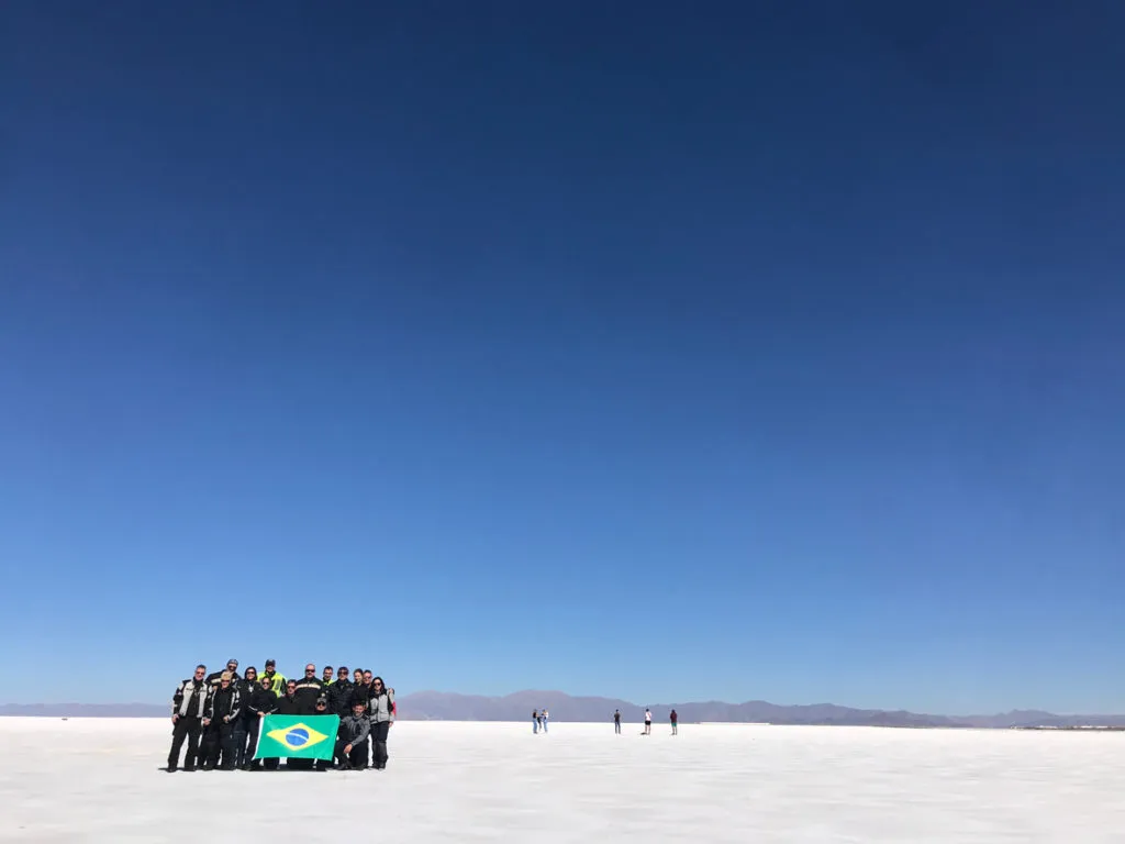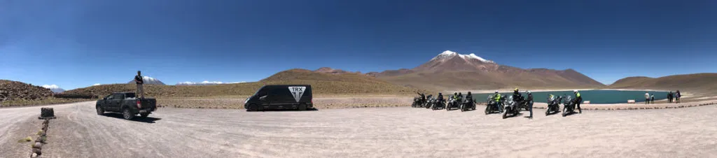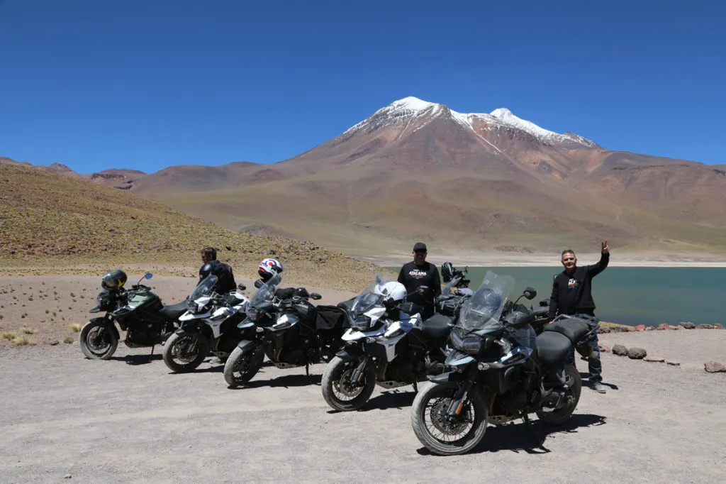 Num dia incrível do tour saímos preparados para o frio da Cordilheira dos Andes. A subida é feita por curvas fechadas, caminhões lentos e algumas falhas no pavimento que requerem atenção do piloto, mas ainda assim a diversão é garantida. Logo chegamos ao marco do ponto mais alto da travessia com 4.170 metros, logo depois cruzamos a aduana para entrar no Chile. Paramos para o almoço em Pastos Chicos, onde matamos a fome e o frio da estrada, depois seguimos para Salinas Grandes.