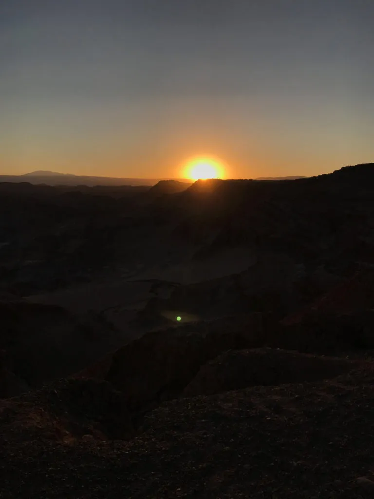 A tarde avançou e seguimos para a Piedra del Coyote, onde vimos o primeiro pôr do sol no Atacama sobre o vale recortado pelas formações rochosas, lugar especial para nosso brinde.