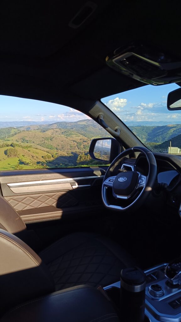 Sempre utilizo uma picape, preferencialmente cabine dupla e com tração 4×4, principalmente para as viagens mais “exigentes” no sentido de estradas. Sempre busco passeios por estradas de terra e, nem todos os veículos estão aptos a enfrentar uma terrinha, às vezes lama, areia ou até, um “corte de caminho”.