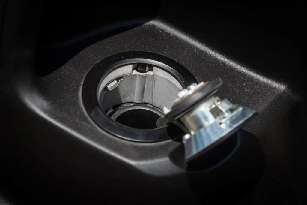 Há também uma tomada 12V que permite carregar dispositivos eletrônicos durante o trajeto. Uma solução muito bem acertada é o bocal do tanque de combustível no lado esquerdo da carenagem frontal, facilitando o abastecimento.
