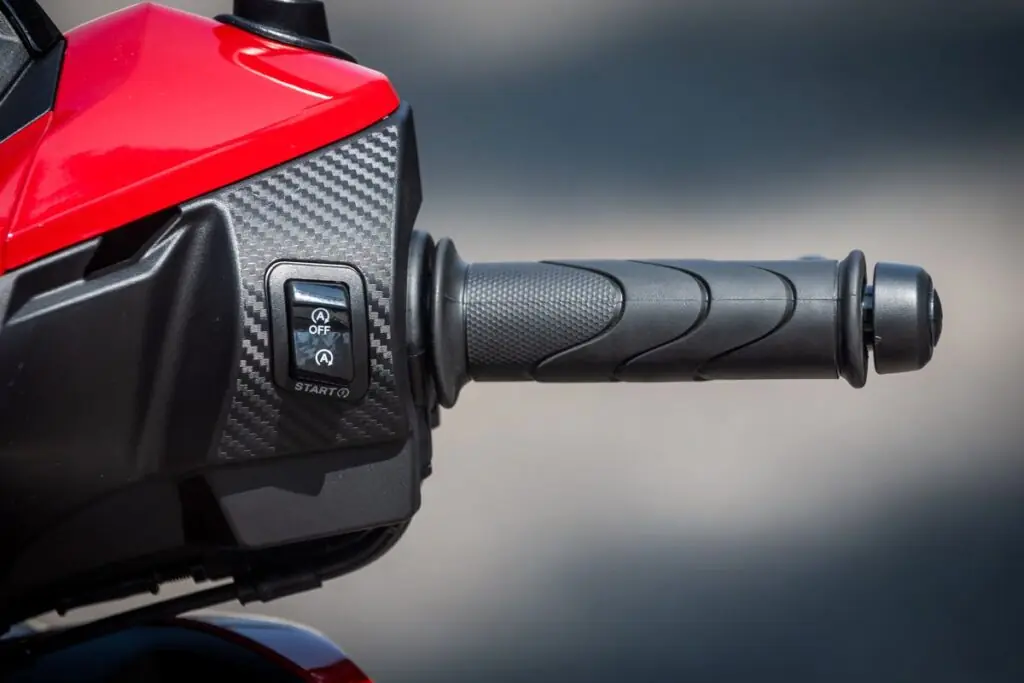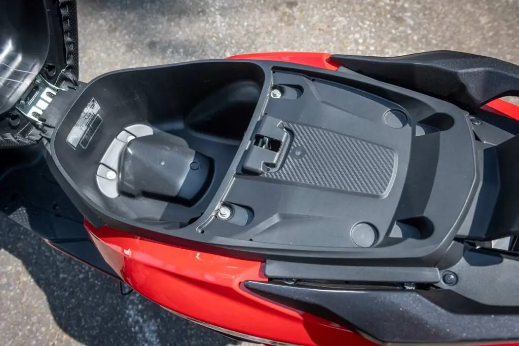 O frontal interno ganhou um segundo gancho na parte da frente sob o banco, o que lhe dá maior capacidade para transporte de volumes. Além deles, o Elite ainda traz um porta-luvas sob o guidão para pequenos objetos, porém, sem tampas.