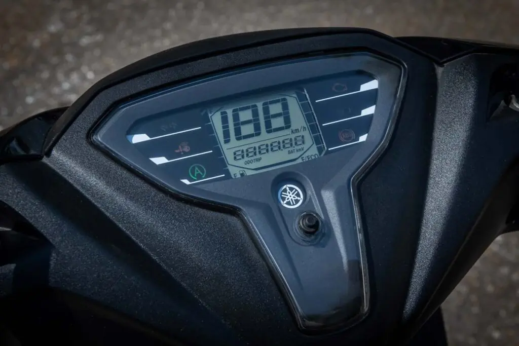 O painel é totalmente digital, com dois displays distintos, um superior tipo black out com velocímetro e logo abaixo um LCD convencional com odômetros, marcador de combustível e relógio.