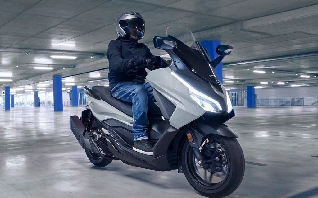 O baixo peso do Forza 125, sendo 161 kg conforme citamos anteriormente, o torna fácil de pilotar, bem como de se estacionar. Os 1505 mm de distância entre eixos oferecem estabilidade e a geometria da direção de 26,5° de inclinação e 89 mm de eixo do trail garantem uma direção ágil.