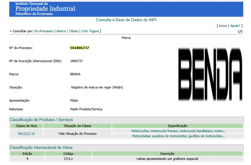 Apesar do registro não garantir a estreia imediata da Benda no país, a iniciativa costuma ser vista como um indicativo de planejamento comercial. Em geral, esse tipo de procedimento antecede possíveis operações locais, como importação, distribuição ou até produção, embora ainda não exista confirmação oficial sobre a chegada das motocicletas ao Brasil.