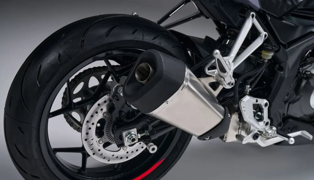 As rodas são de 17 polegadas com aros de liga de alumínio, com pneus 110/70 na dianteira e 150/60 na traseira. Os freios são equipados com disco duplo semiflutuante de 260 mm de diâmetro, com pinça de 4 pistões na roda dianteira, enquanto na traseira há disco de 240 mm com pinça flutuante de pistão único. A moto está equipada com ABS.
