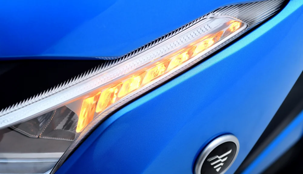 Na frente existe um protetor de para-brisa ajustável projetado para viagens longas. Toda a iluminação é em Full LED e os faróis óticos duplos integram um DRL diurno com os indicadores de operação sequenciais nas extremidades laterais. Em termos de ergonomia, o banco dispõe de 761 mm do solo e apresenta um encosto para suporte lombar.