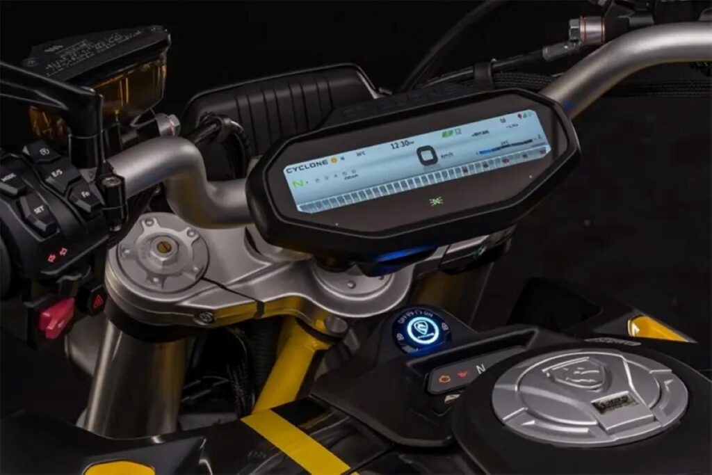O painel TFT de 6 polegadas não é apenas uma tela; é uma central de controle que gerencia desde a conectividade até o sistema keyless. A adoção de uma bateria de lítio de série reforça o compromisso com a modernidade e a redução de massas.