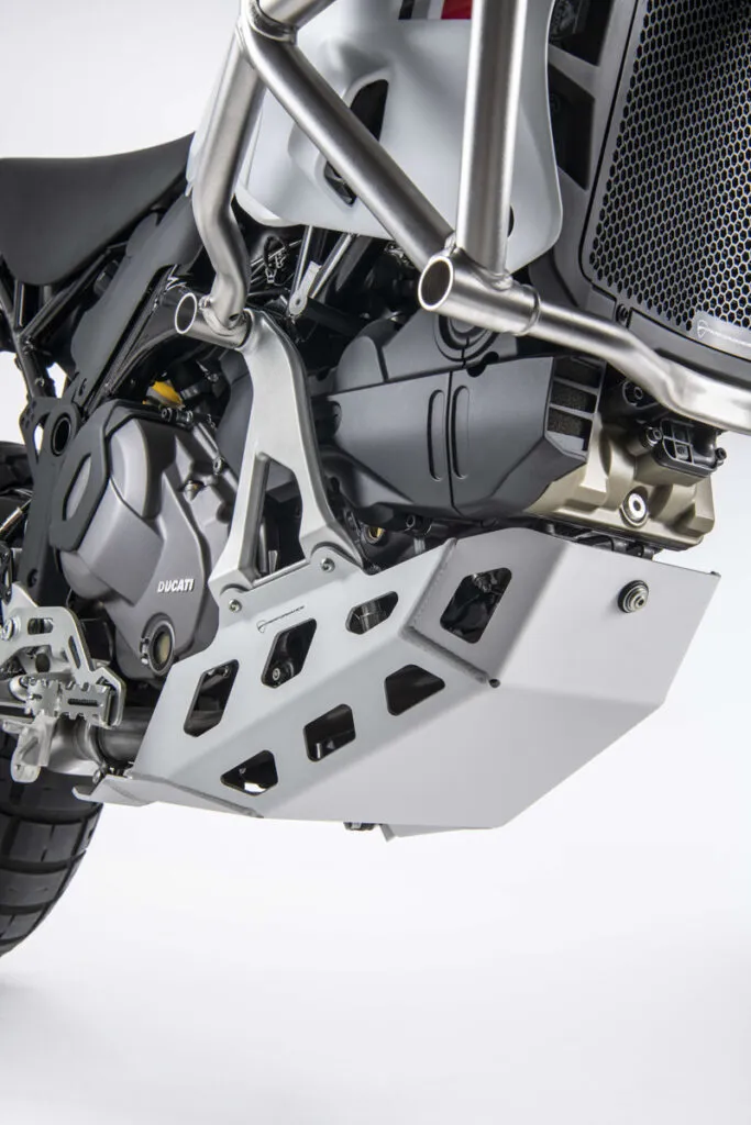 Ela ainda vem com rodas de tamanho inédito para uma Ducati, com 21 polegadas na dianteira e 18 na traseira, estas equipadas com pneus Pirelli Scorpion Rally STR nas medidas 90/90 e 150/70, respectivamente. Além disso, ela também está homologada para equipar pneus orientação off-road (90/90-21 e 150/70-18), e pneus de estrada nas medidas 90/90-21.