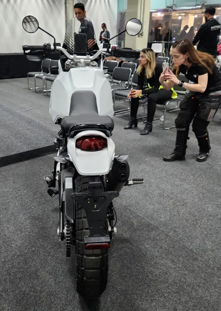 O tanque, por sua vez, tem capacidade para 21 litros de combustível, capacidade que já é interessante e pode ficar ainda melhor com a montagem de um tanque de 8 litros na parte traseira, este vendido como acessório. A transferência da gasolina entre os dois tanques pode ser ativada no painel quando o nível de combustível no tanque principal cai abaixo de um determinado nível.