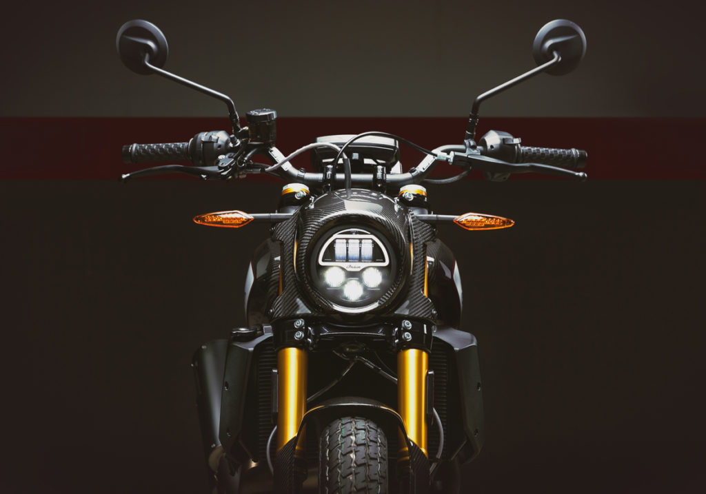 A nova Indian FTR 1200 Carbon ainda traz sistema ABS com função cornering e transmissão com recurso anti-wheeling. Elas podem ser controladas no painel de TFT com tela de 4,3 polegadas e conexão Bluetooth.