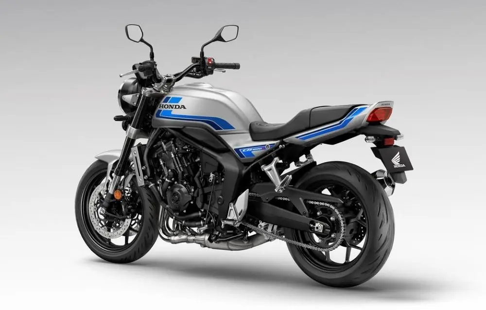 A nova Honda CB1000F será oferecida em três cores: Prata com detalhes em azul, Prata com detalhes em cinza e Preto com grafite. A Honda ainda preparou pacotes de acessórios diferentes: