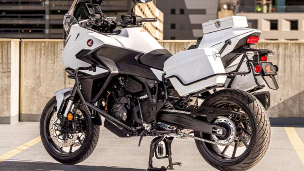 Disponível na cor branca e com preço sugerido de US$ 14.499, a nova NT1100 Police começou a ser oferecida pela Honda nas terras do Tio Sam em janeiro. O modelo chega equipado de fábrica com diversos itens voltados ao uso policial, como malas laterais, chicote elétrico para personalizações, protetor de motor, para-choque traseiro, compartimento para documentos e capa de assento, além da possibilidade de inclusão de componentes adicionais por fornecedores homologados conforme a necessidade de cada departamento.