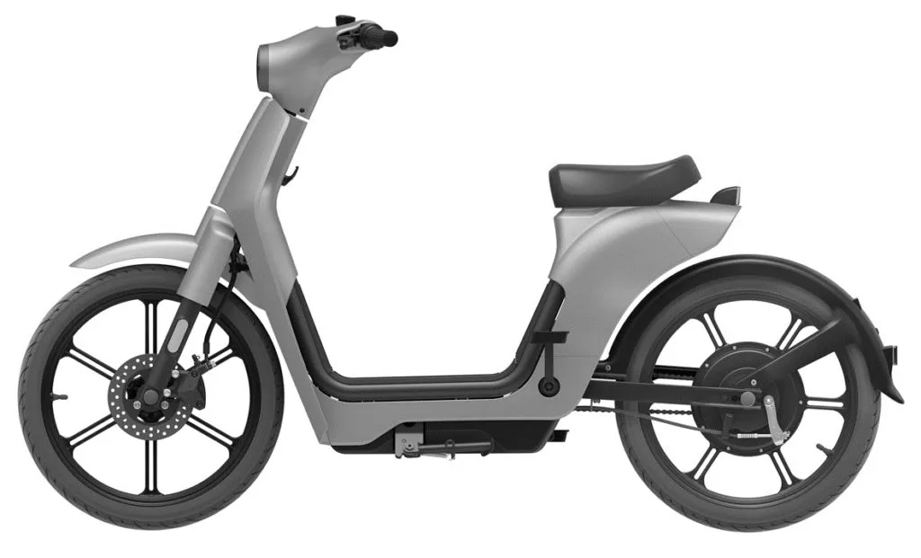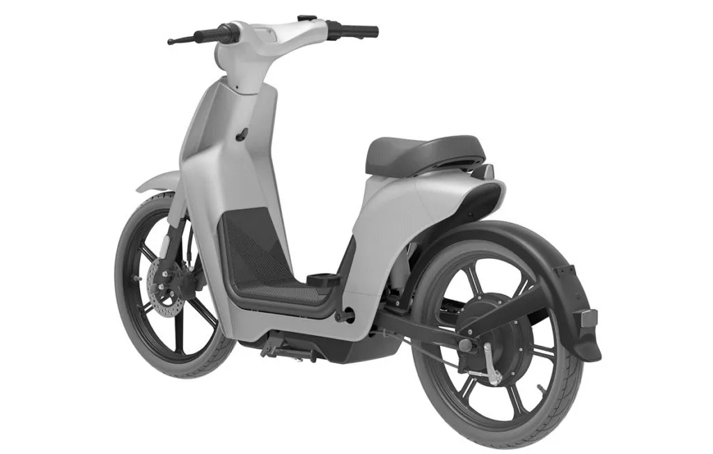 Se ainda não sabemos o seu nome, esta primeira versão apresenta uma mistura de gêneros bastante original com um visual Cub, um pedal de bicicleta e um motor na roda traseira. Antes de mais nada, dada a simplicidade do veículo, percebe-se que este é um ciclomotor onde os pedais só devem ser usados como último recurso no caso da bateria estar descarregada.