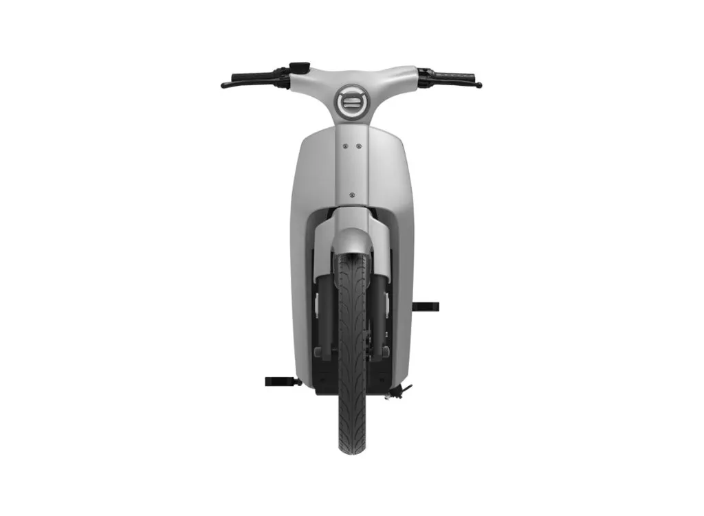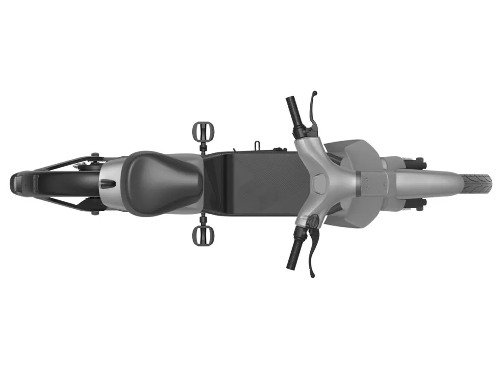 Certamente, o modelo também é apresentado como um utilitário bem básico com o seu piso largo e plano, as rodas grandes e finas, bem como o seu pequeno banco único. A presença de um suporte de placa no para-lamas traseiro confirma a orientação do ciclomotor que, de fato, ainda precisará conseguir homologação.
