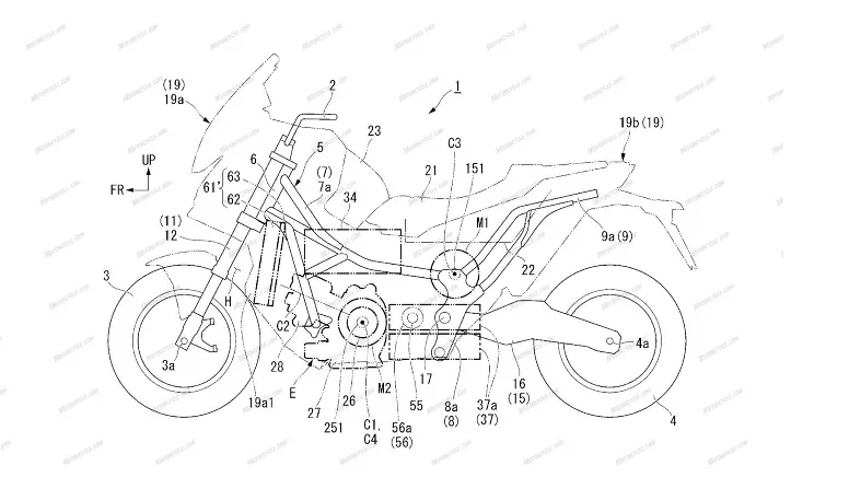 Mas graças a alguns registros de novas patentes, agora sabemos que a Honda realmente está trabalhando nesse sentido. Na verdade, ela registrou pelo menos 11 patentes separadas relacionadas a veículos híbridos de duas rodas.