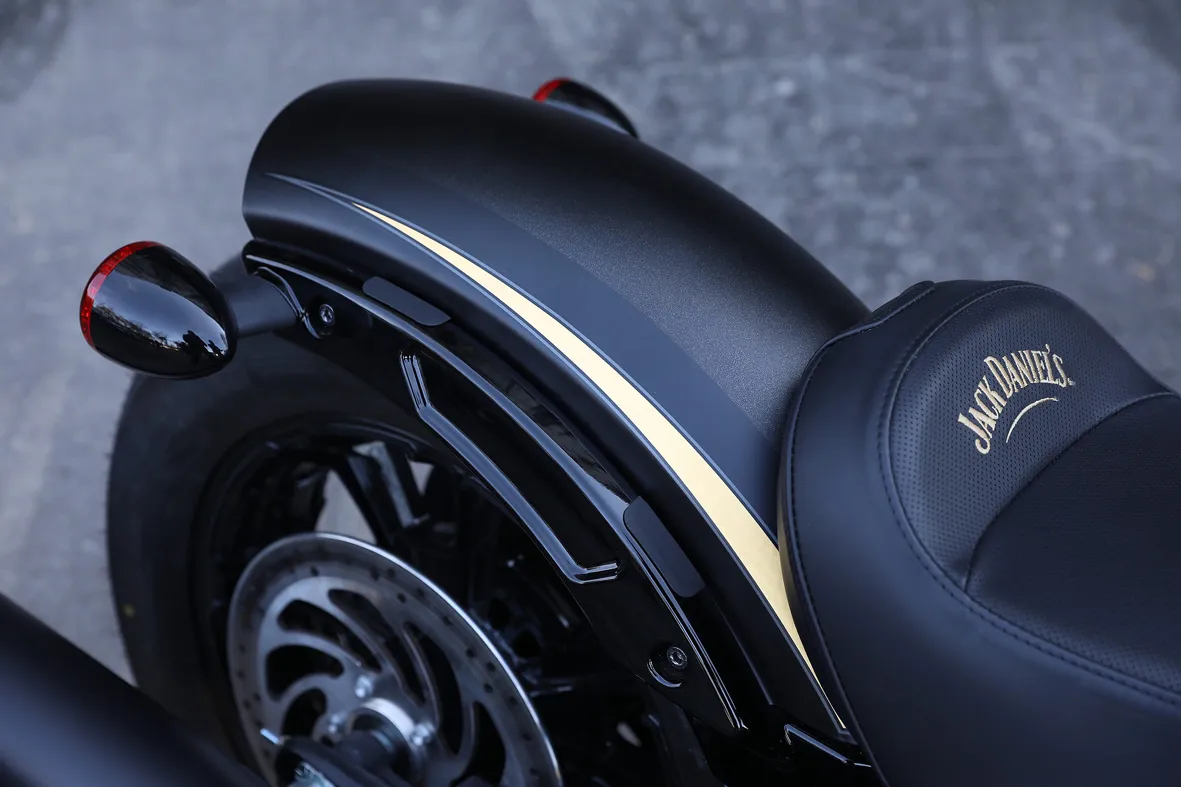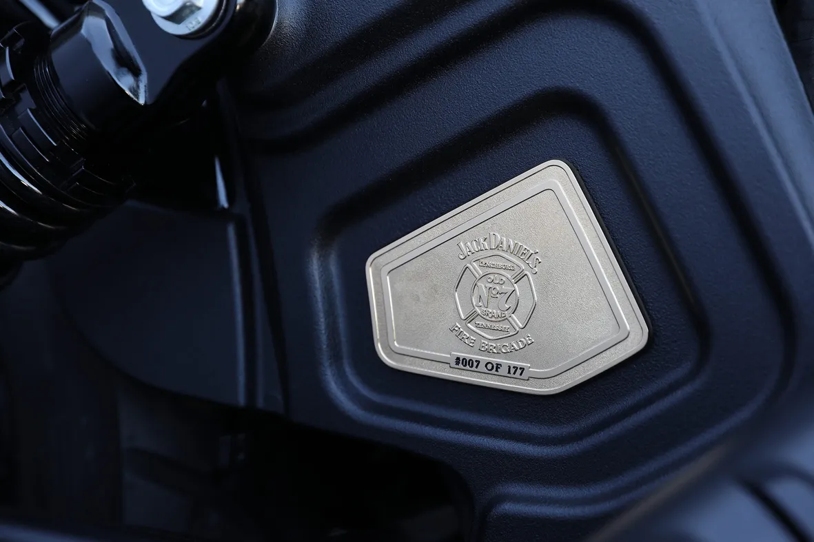 Outros elementos alterados em alusão ao uísque nesta edição especial foram a alavanca de câmbio, manoplas e pedaleiras. Cada moto é pintada a mão pela Klock Werks Kustom Cycles, oficina que também ficou responsável pelos modelos produzidos nos últimos dois anos. “Neste ano, o desenho da moto em edição limitada busca inspiração na incrível história do Corpo de Bombeiros da Jack Daniel’s, honrando a paixão e a dedicação de bombeiros e médicos que servem ao nosso país”, comentou Steve Menneto, presidente da Indian Motorcycle, marca que atualmente pertence à Polaris.