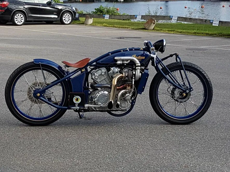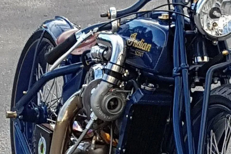 Criada pelos suecos Anders Ludgren e Lasse Sundberg da Fullhouse Garage Shop, em Estocolmo, a Indian Super Scout é uma versão especial da custom norte-americana equipada com um kit turbo Garret 25. “Queríamos construir uma moto relacionada com a história da Indian nas pistas e ainda incluir as novas tecnologias que a mrca traz hoje. O modelo Scout foi a escolha perfeita e escolhemos o nome Super Scout para honrar os antigos modelos que eram quase imbatíveis nas pistas”, comenta Anders.