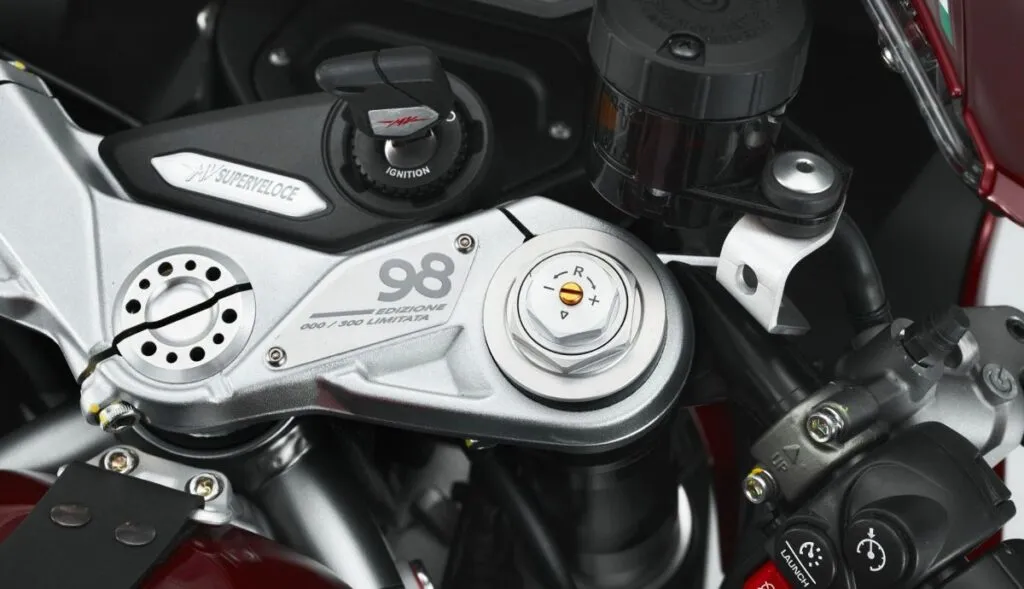 A Superveloce 98 é identificada com o logotipo “98 Edizione Limitata” localizado na parte traseira e também acima. Também é identificado na placa de direção, gravado a laser, e inclui certificado de autenticidade que é entregue junto com a motocicleta.