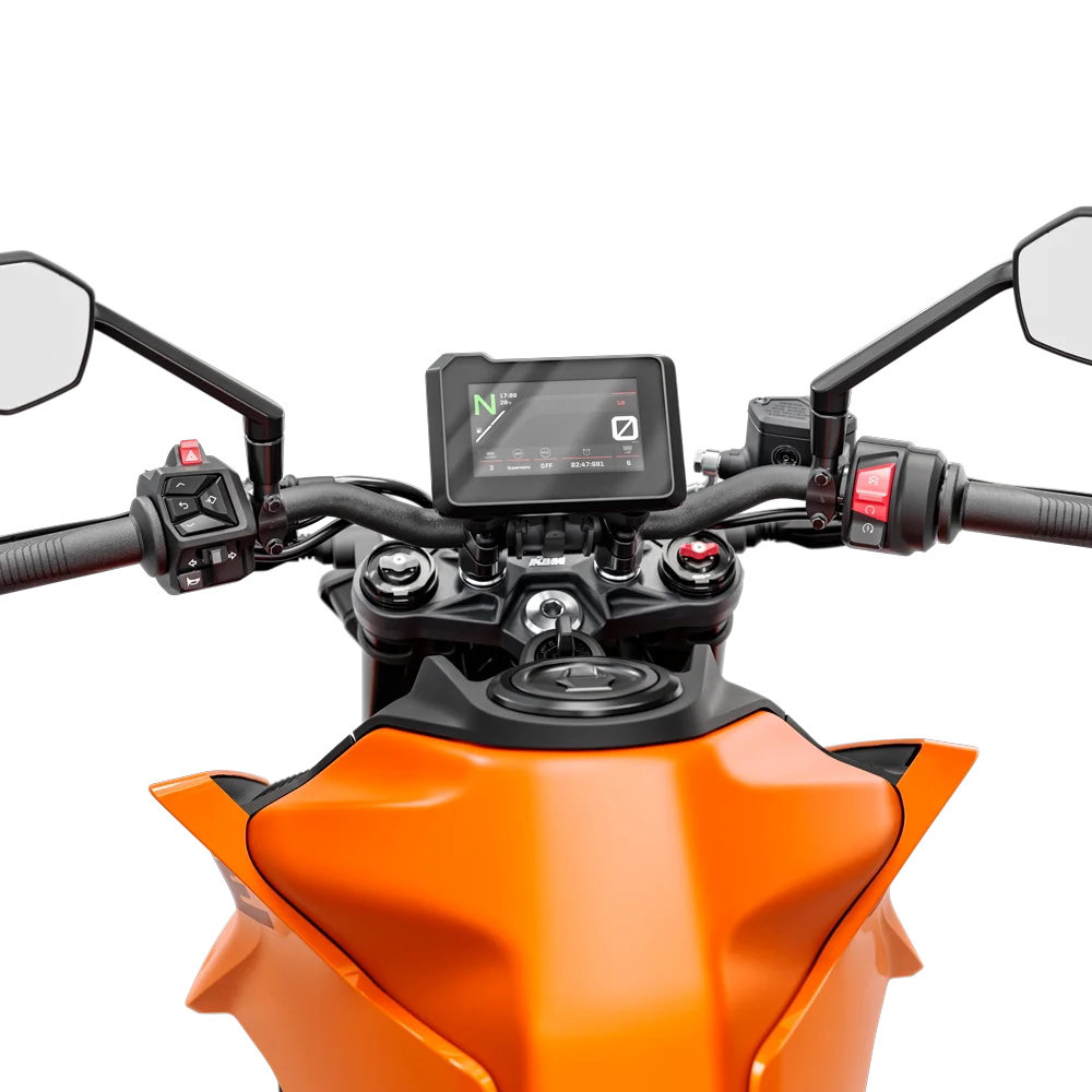 Em termos de eletrônica, a naked austríaca agora vem com três modos de condução (Rain, Street e Track), além de controle de largada e ABS em curvas.
