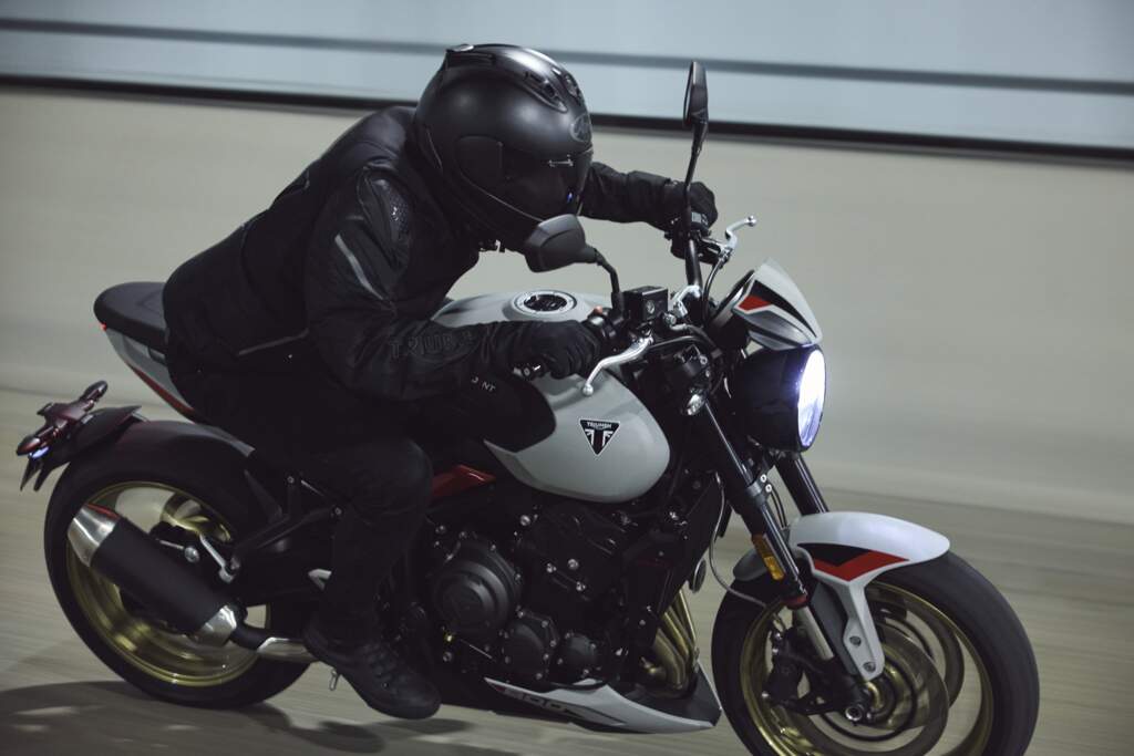 A nova naked britânica chega equipada com ABS e controle de tração sensíveis à inclinação, três modos de pilotagem (Rain, Road e Sport), controle de cruzeiro e conectividade Bluetooth My Triumph. O painel TFT colorido de 3,5 polegadas permite acessar música, chamadas e navegação curva a curva diretamente no guidão.