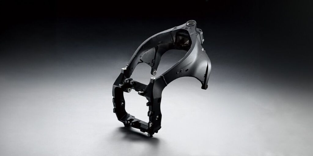 - Quadro Deltabox de Alumínio: o equilíbrio ideal entre rigidez longitudinal, horizontal e torsional. Ele permite que o piloto mude a linha de trajetória com liberdade total durante a curva.