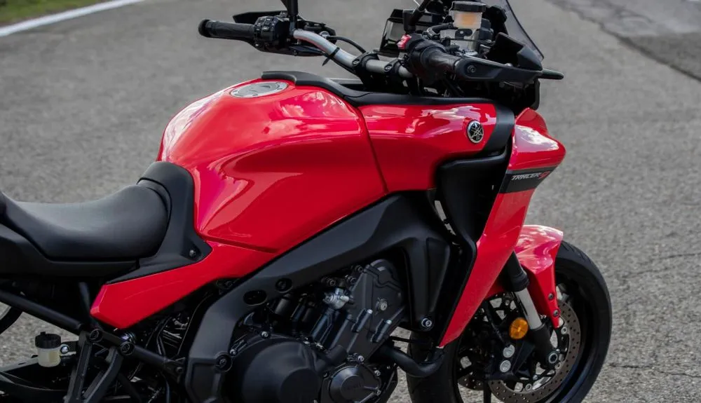 Além das mesmas cores vermelho Redline ou cinza Tech Kamo, a Tracer 9 GT tem a cor Yamaha Icon Performance, inspirada na Yamaha R1M.