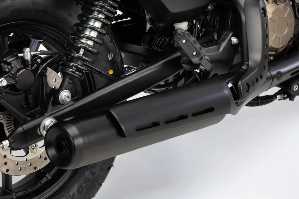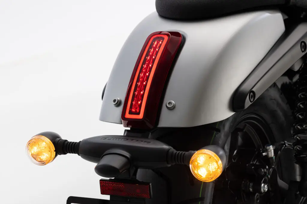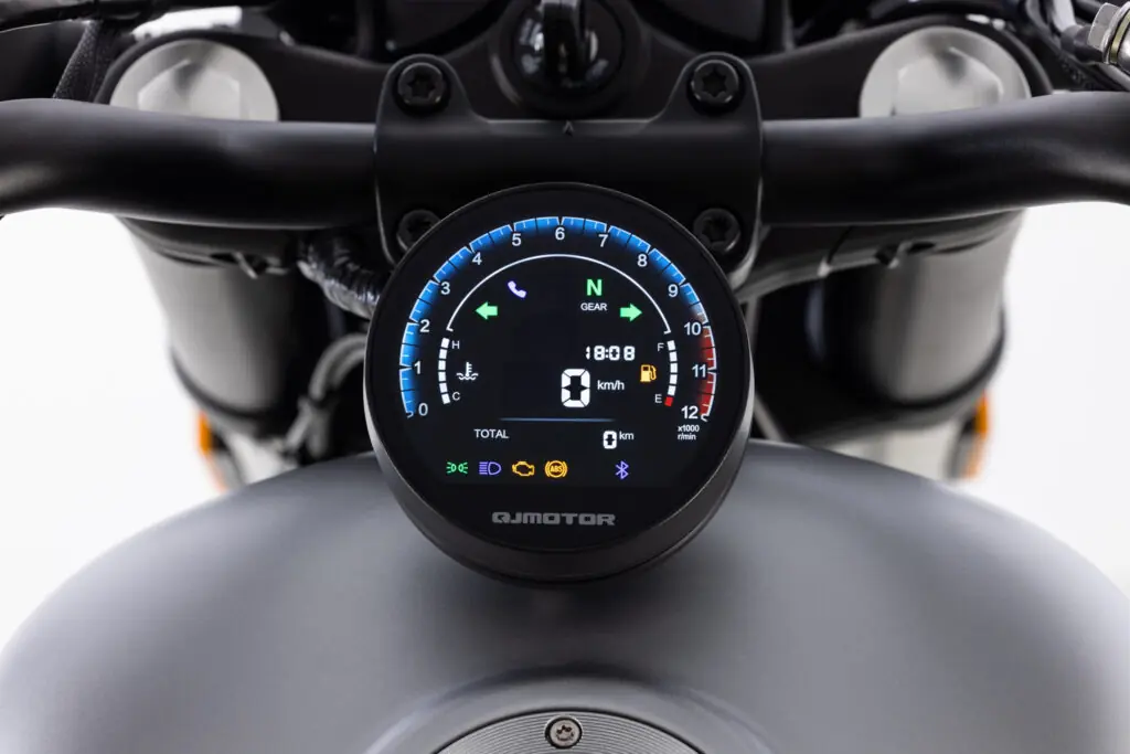 As rodas, por sua vez, são de 16 polegadas na frente e 15 atrás, e estão equipadas com pneus nas medidas 120/80 e 150/80, respectivamente. Tomada USB e um painel LCD com conectividade e rico em informações completam o pacote da pequena custom da QJ Motor.