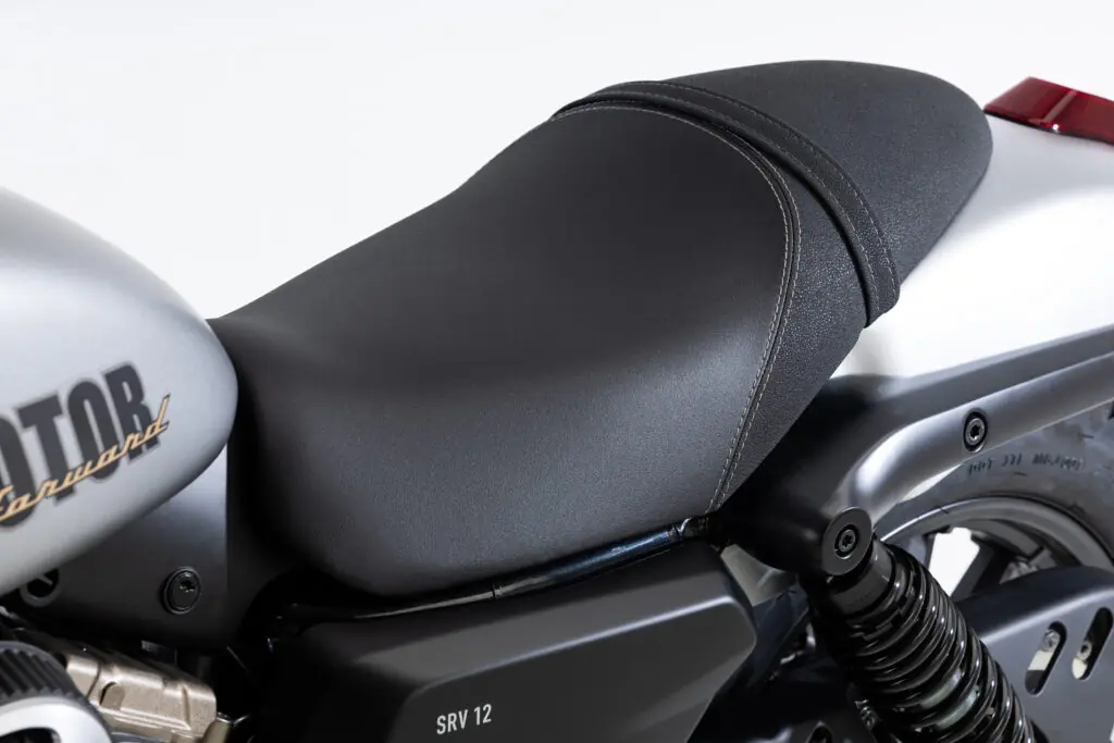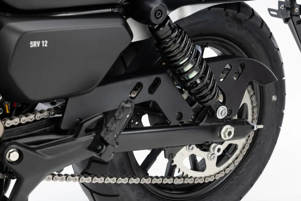 O motor da SRV 12 é um bicilíndrico em “V” de 125 cm³, refrigerado a líquido, com comando SOHC e 4 válvulas. Ele gera 13,5 cv de potência e 1,01 kgf.m de torque a 9.250 rpm, com entrega linear em baixas e médias rotações. Além do desempenho, o propulsor se destaca pelo som característico dos V-Twin, elemento valorizado pelos fãs do estilo custom.