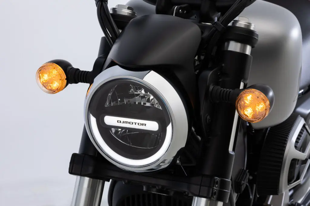 Na parte ciclística, a moto da QJ Motor vem equipada com suspensão dianteira invertida de 48 mm e curso de 125 mm, enquanto a traseira utiliza dois amortecedores com ajuste de pré-carga. Os freios trazem discos de 280 mm na dianteira e 240 mm na traseira. Nesse sentido, ambos são assistidos por ABS, garantindo mais segurança em frenagens de emergência e em pisos de baixa aderência.