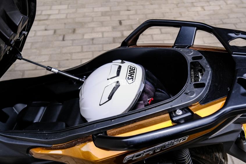 No que diz respeito à praticidade, os técnicos chineses parecem não ter se poupado: há gavetas fundas na parte posterior do escudo para guardar objetos e recarregar dispositivos via tomadas USB, enquanto o compartimento sob o assento deve acomodar um capacete e outros acessórios.