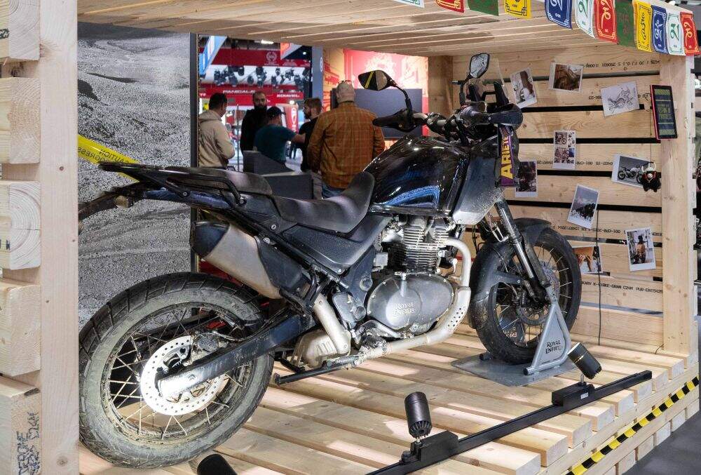Mesmo sem apresentação oficial, o público pôde conferir uma prévia da motocicleta no EICMA. A Himalayan 750 ficou exibida dentro de uma caixa, acompanhada de uma placa indicando que o modelo ainda está em testes.