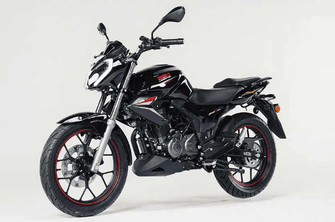 A nova 150 da SBM utiliza chassi em aço tipo Diamond, combinando resistência e leveza. A suspensão dianteira convencional oferece curso de 107 mm, enquanto a traseira traz monoamortecedor. O sistema de freios a disco possui 260 mm na dianteira e 190 mm na traseira, com ABS de canal único atuando na roda dianteira.