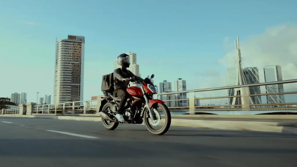 Além disso, as rodas são de liga leve, medem 17 polegadas e calçam pneus 90/90 na frente e 120/80 atrás. O peso em ordem de marcha é de 136 kg, e o tanque de 14,5 litros garante boa autonomia.