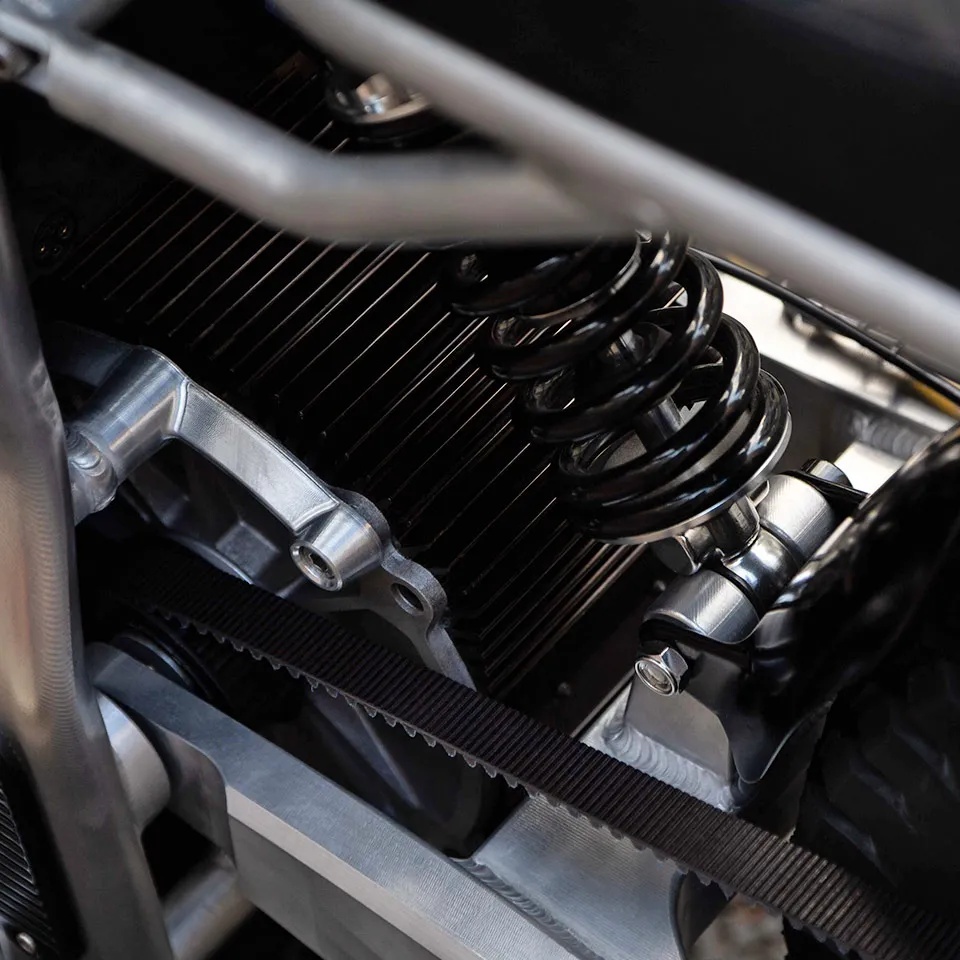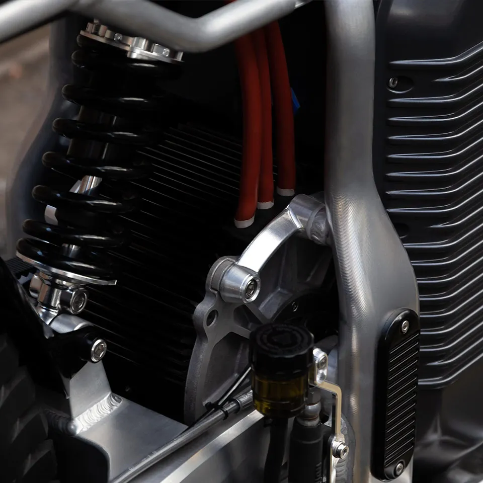 Equipada com um motor elétrico ancorado no chassi, tem transmissão final por uma correia dentada Gates e uma bateria de polímero de lítio Panasonic. O desempenho é poderoso, com arrancadas de 0 a 100 em 3,2 segundos, velocidade máxima de até 170 km/h e autonomia com alcance de até 150 km. A bateria leva 5 horas para uma carga completa.