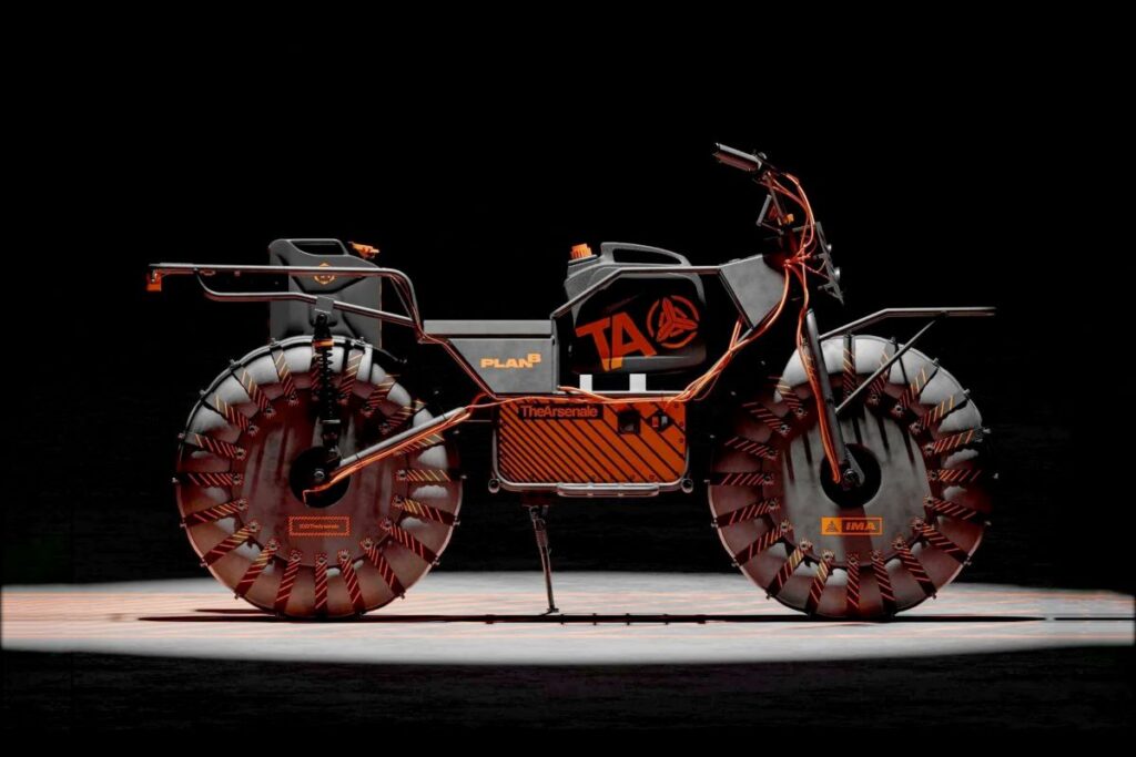 A The Arsenale Plan B é uma motocicleta que desafia os conceitos tradicionais de mobilidade, combinando tecnologia, durabilidade e versatilidade em um único veículo. Projetada para enfrentar os terrenos mais desafiadores, a Plan B oferece uma experiência de pilotagem única e inovadora com a tração nas duas rodas. Ela foi desenvolvida pela Arsenale, uma butique sofisticada para soluções de transporte exclusivas em Dubai.