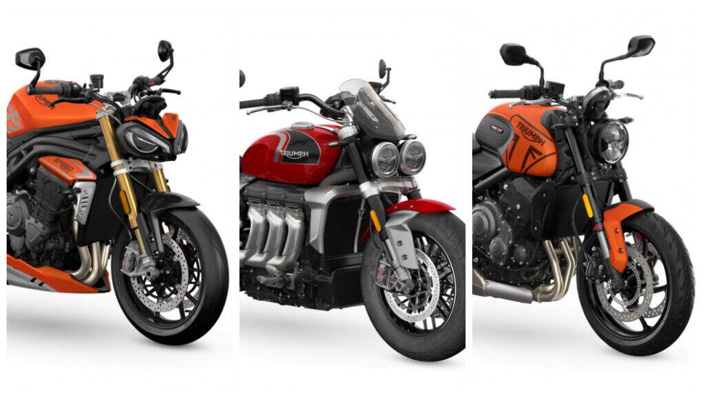 Estamos apenas em maio, mas a Triumph já está pensando na próxima temporada. Assim, a marca inglesa acaba de revelar novas cores para sua linha de roadsters, que vai da Rocket IIIR/GT às esportivas naked Street Triple e Speed Triple, terminando com a naked clássica Trident.