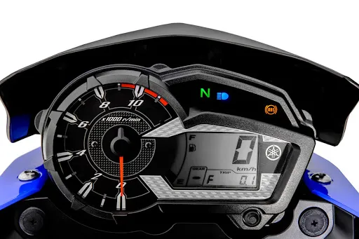 O painel multifuncional é completo e conta com um grande conta-giros analógico e um display LCD com as principais informações de rodagem como velocímetro, hodômetro total e parcial, nível de combustível, além de indicador de marcha e marcador ECO.