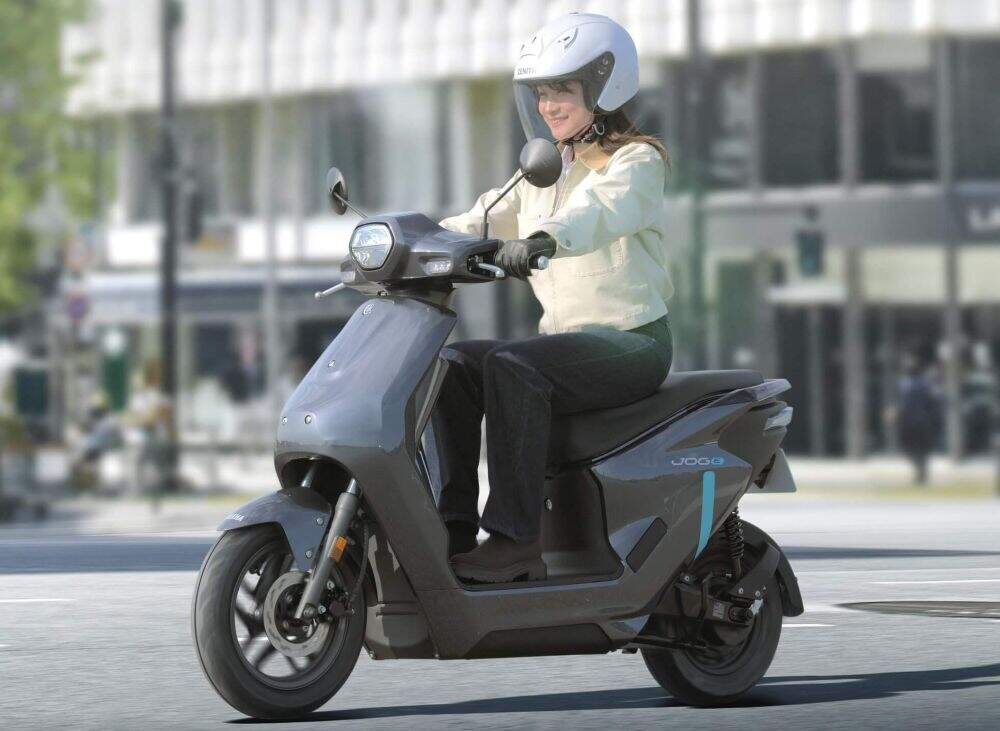 Segundo a Yamaha, a autonomia do Jog E chega a 53 km no teste de rodagem urbana a 30 km/h. As rodas usam pneus 90/90-12 na dianteira e 100/90-10 na traseira, ambos sem câmara, acompanhados por freio a disco hidráulico na frente e tambor atrás, além de suspensão com garfo telescópico e conjunto oscilante. O farol é em LED e o scooter é homologado para apenas um ocupante, reforçando seu foco em deslocamentos rápidos e funcionais dentro da cidade.